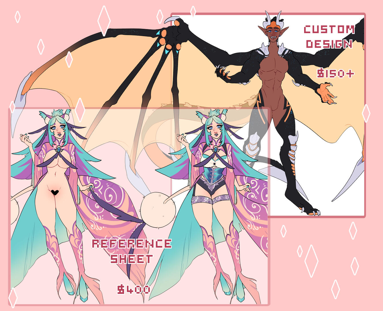 Should these terms of service be broken, I reserve the right to refuse future business with the user and they will be put on a blacklist.Anyone may also choose to take commissions of the species- limited to species-specific YCH as well as commission prompts. You may not sell MYOs, adoptables or other events that result in adding to the existing population of the species.PaymentAll payment must be in $USD unless otherwise noted, and sent within 48 hours of payment request.Payment methods for commissions must 100% upfront. I do not accept payment plans at this time.Rush orders will cost an additional 50% of the base commission price for priority.I reserve the right to refuse a request for a refund for any reason. Should a refund be offered or accepted, the buyer will receive 100% back, so long as the commission is 50% done or less.